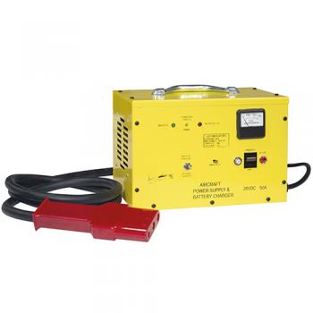 The PS-2850AEP is a DC power supply designed for testing aircraft electrical systems with a secondary mode for recharging run-down batteries. It provides a filtered 28 VDC output up to 50 amp and plugs directly to the APU connector on the aircraft.