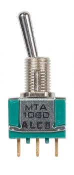 TOGGLE SWITCH/SPDT (single pole double throw), hole mount, terminal seal, gold flash over silver plating, on-none-on