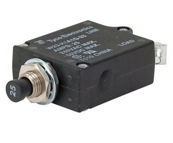 W23X1A1G-25/25 AMP CIRCUIT BREAKER/AC: 240V, DC: 50V, 50 VDC, panel mount, 1 pole, push button actuator, black, screw termination. Height: 35.15 mm Length: 40.64 mm Width: 17.53 mm